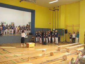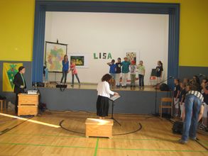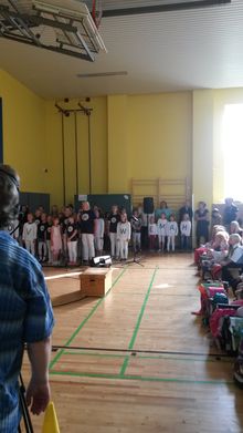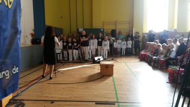 Natürlich durfte dabei unser Chor nicht fehlen. Dieses Jahr hat der Chor etwas ganz besonderes für die Einschüler einstudiert: Das Musical "Ach du meine Tüte".