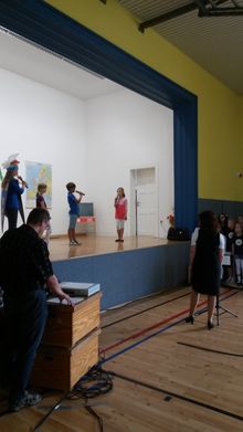 Die Kinder haben nciht schlecht geschaut, wo auf ein mal auf der Bühne ein Kind, wie sie stand und genau so eine "Angst" vor der Schule hatte. Zum Glück hat die Schultüte des Kindes ihm schon mal im voraus die Schule gezeigt. Somit konnte nun die Schule nicht schnell genug los gehen.