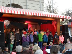 Lieder wie zum Beispiel "Weihnachstbäckerei" und "kleiner grüner Kranz" stimmten die Besucher auf dem Marktplatz auf die kommende Weihnachtszeit ein.