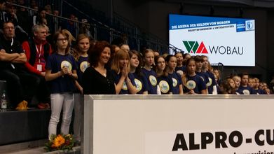 Am 09. und 10.Januar 2016 fand XV. Matthias-Pape-Gedächtnisturnier statt. Dabei handelt es sich um eine U15-Hallenfußballturnier. Am Samstag wurden die Elbkinder Magdeburg eingeladen vor fantastischer Kulisse das Magdeburger Lied vorzutragen. Da es sich dabei um unser Lied handelt, sind wir natürlich hingefahren.