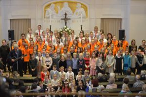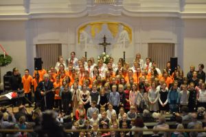 Ein großes Ereignis stand dem Auftrittschor der Elbkinder Magdeburg ins Haus. Am ersten Adventswochenende ging es in die sächsische Landeshauptstadt Dresden zu einem gemeinsamen Weihnachtskonzert ausgewählter Elbkinderland-Chöre und natürlich mit Rolf Zuckowski. Das Gründungsmitglied des Elbkinderlandes lud kleine und große Nachwuchssänger zu einem vorweihnachtlichen Konzert am Nachmittag des 26.11.16 in die Dresdener Annenkirche ein. Neben den Magdeburger Elbkindern waren auch die einheimischen Dölzschener Spatzen, Mitglieder der Musikschule Dresden – Halka Förster und sogar tschechische Gäste aus Kvitek Podebrady mit dabei, die von Anfang an mit dem Lied „Macht euch bereit“ für vorweihnachtliche Stimmung im Raum und beim Publikum sorgten. Nach der gemeinschaftlichen Eröffnung bot jeder der Chöre ein eigenes Programm dar, welches sowohl gesanglich als auch instrumental von Rolf Zuckowski begleitet wurde. Die Magdeburger Sängerinnen und Sänger gaben dabei Rolfs Weihnachts- und Winterhits wie „Kleiner grüner Kranz“ oder „Weiße Flocken“ zum Besten. Besonderes Highlight war das von Chorleiterin Britta Meier und Rolf Zuckowski gesungene Duett „Dezemberträume“. Zum Schluss des Konzerts stimmten noch einmal alle Chöre das Lied „In der Weihnachtsbäckerei“ an, bei dem auch das Publikum nicht mehr auf den Plätzen zu halten war und kräftig mitsang.